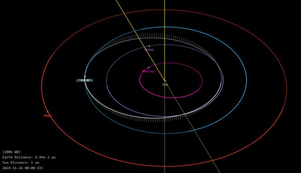 2006 WB Asteroid Orbit near Earth. Credit: SSD/JPL/NASA