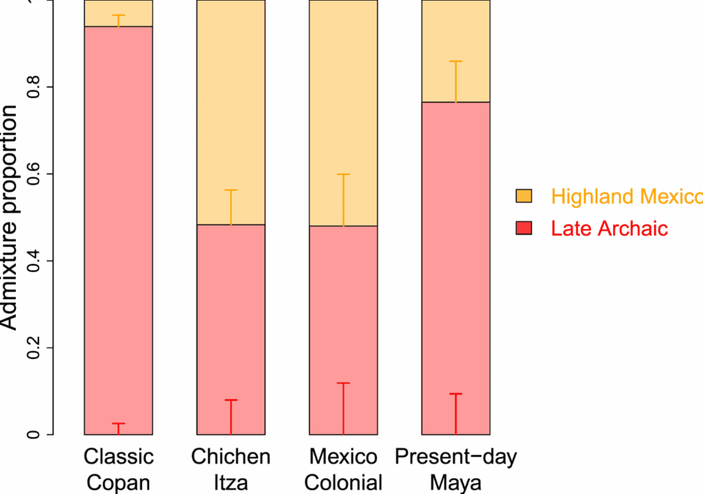 The newborn genomes were then compared to the north -modern and modern genomes, revealing a strong genetic continuity in the Mayan region from the late archaic to this day.