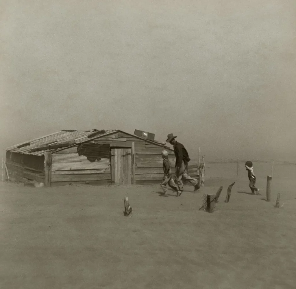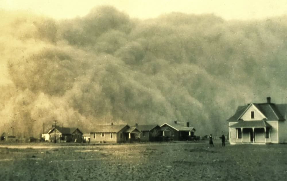 These dust clouds were so dense that they covered houses, cities and even the light of the sun blocked. In April 1934, one of these storms crossed the country and reached north -East. When he found a cold forehead, the blood color mixed with the snow in Boston, dying -all red. It looked like a movie stage.