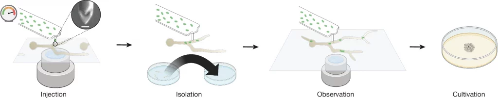 One of the biggest challenges was to insert bacteria into the fungus cells, which have a rigid cell wall. To do this, the group, led by the microbiologist Gabriel Giger, used a technology called Fluidfm. This method consists of applying pressure to force bacteria to enter the fungal cell, which required quite precision. Despite the initial difficulties, the process was successful and the bacteria began to reproduce within the fungus.
