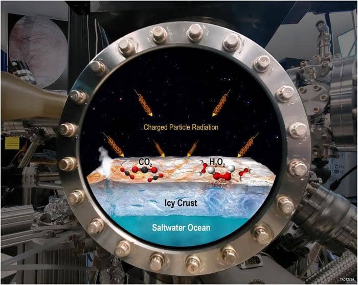 The experiment has shown that at temperatures such as the surface of Europe, even the smallest amounts of CO2 can lead to a very high increase in H2O2 levels, capturing electrons produced by radiation and preventing the breakage of peroxides in later reactions.